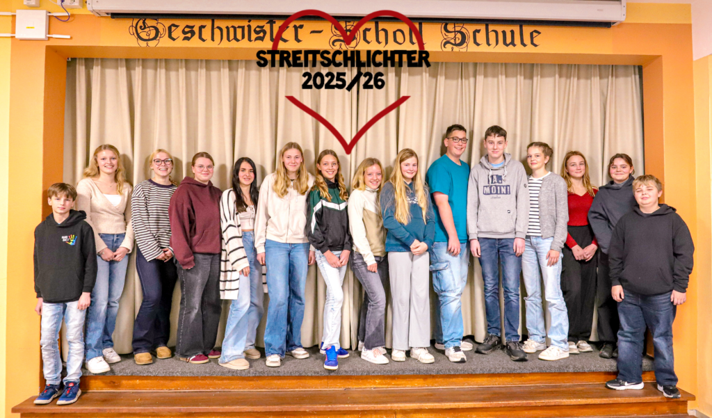 An unserer Schule gibt es eine Gruppe von Schülerinnen und Schülern, die als Streitschlichter arbeiten. Sie haben dafür eine Ausbildung absolviert und treffen sich weiterhin in einer Arbeitsgemeinschaft. Betreut werden sie von Frau Kipp (Lehrerin) und Frau Meyer (Sozialarbeiterin).